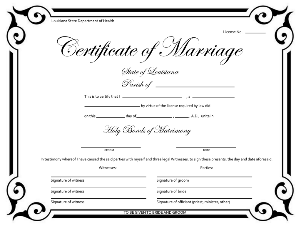 Example marriage certificate